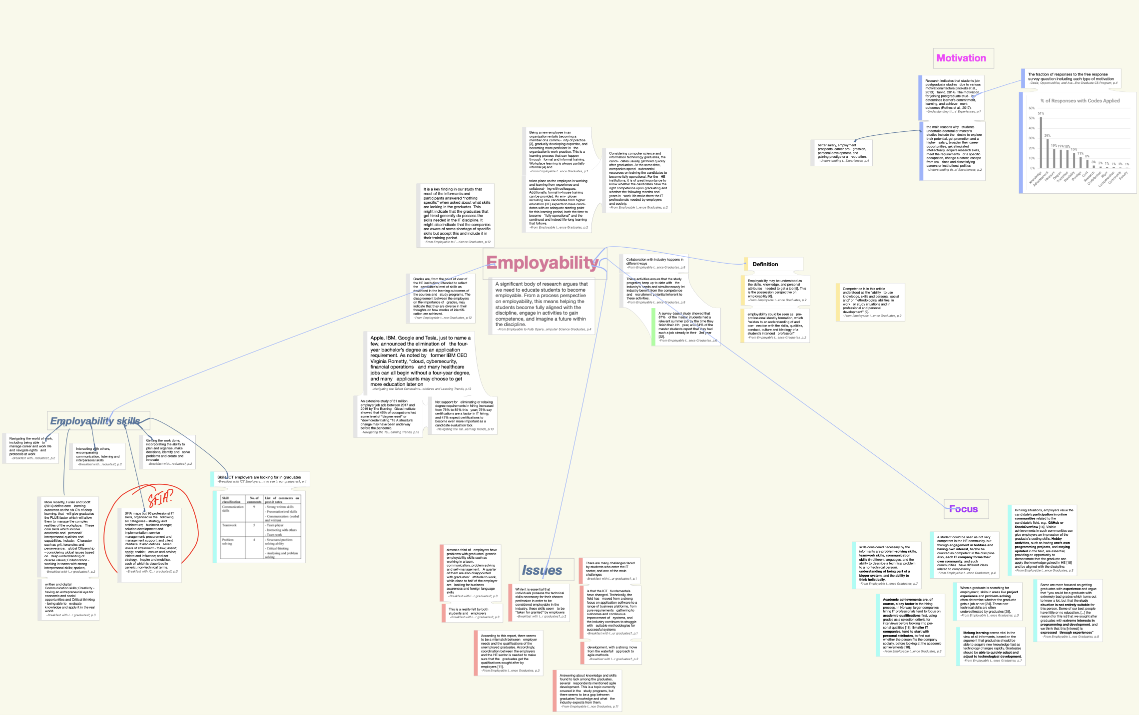 In the end, I got a pretty neat mind map with many notes on different aspects of the topic. The best part is that all ideas from the papers are clearly visible, and it’s easy to track any idea back to its source.
